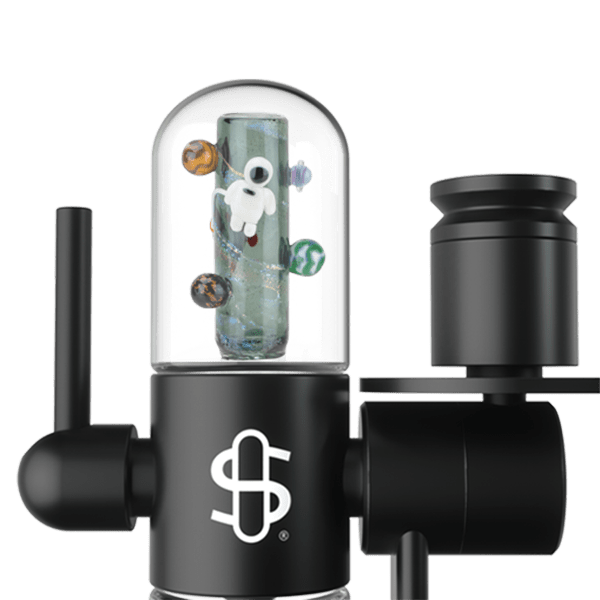 Explore the final frontier in this "Across the Universe Collection," featuring colorful planetary orbs and a glowing astronaut floating across a sparkling dichroic backdrop. Replace your upstem on any Stündenglass Kompact with this non-percolating Across the Universe stem!